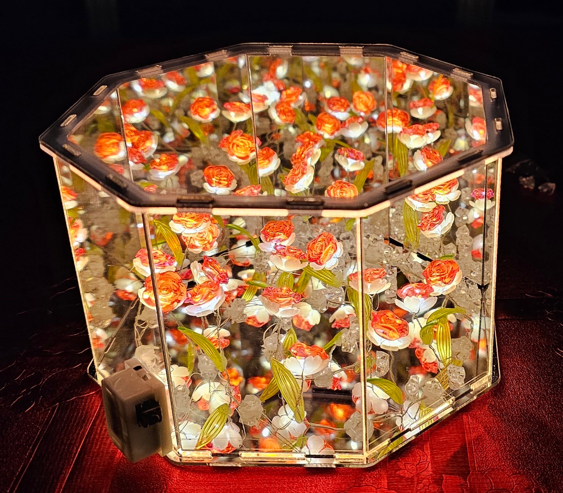NoVa DIY Tulip Flower Decahedron Night Lamp featuring handcrafted tulip flowers, customizable color options, and a mirrored decahedron design, perfect for elegant home decor and gifts